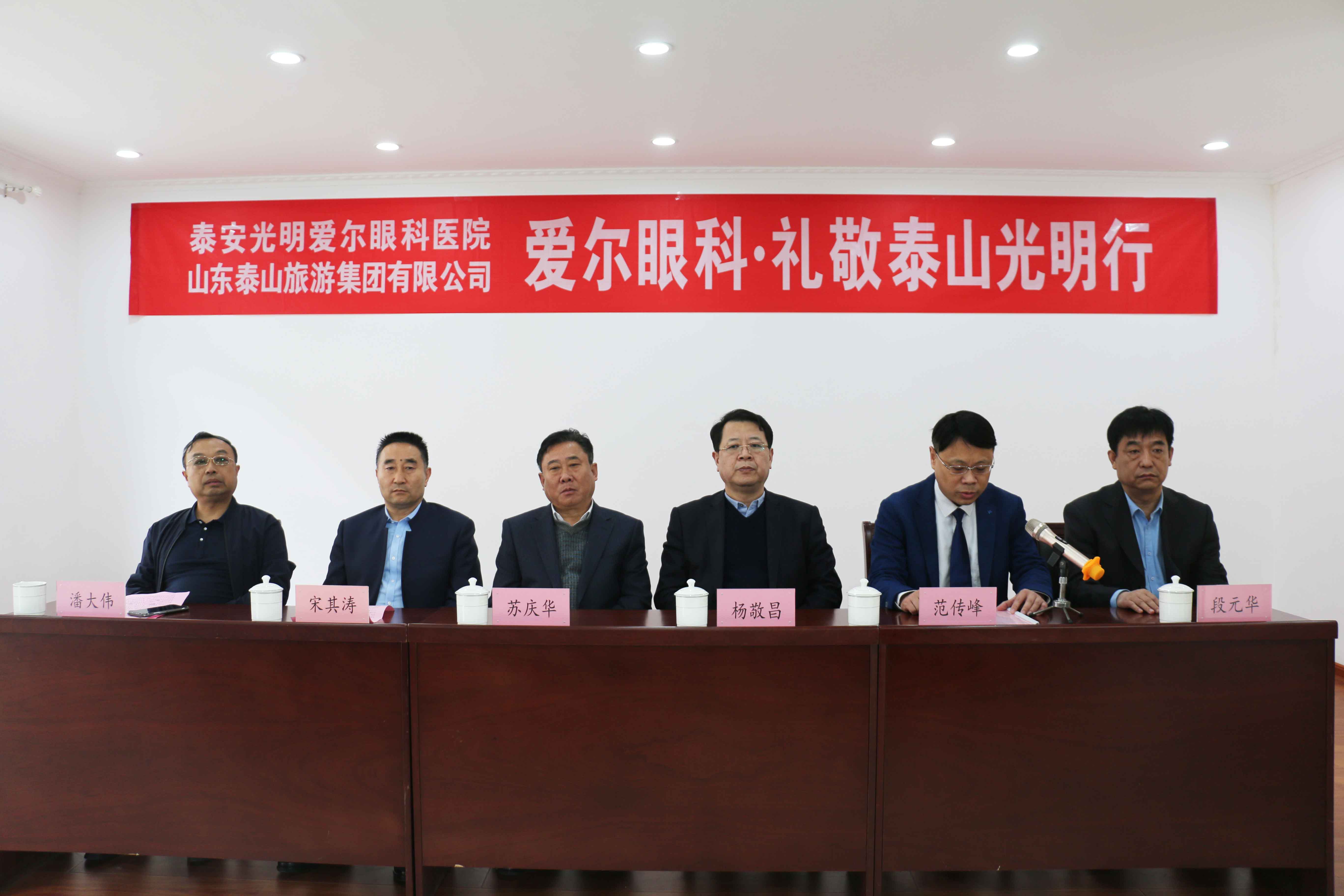 ? ? ? ? 3月26日上午,由山東泰山旅游集團有限公司與泰安光明愛爾眼科醫(yī)院聯(lián)合開展的“愛爾眼科?禮敬泰山光明行”活動正式啟動。旅游集團黨委書記、董事長蘇慶華,旅游集團黨委委員、副總經理潘大偉,景區(qū)客運公司董事長、總經理宋其濤,泰安光明愛爾眼科醫(yī)院CEO楊敬昌,院長范傳峰,行政副院長段元華以及泰山旅游集團近70名職工參加啟動儀式。