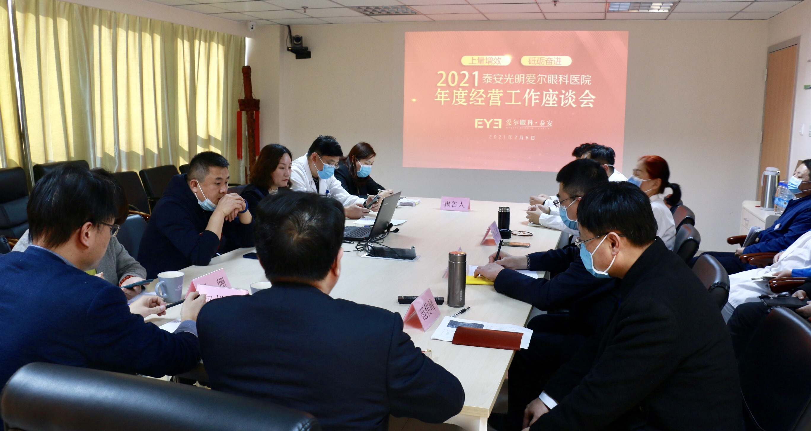 ? ? ? ?臨近春節(jié),愛爾眼科山東省區(qū)CEO包樓軍、財(cái)務(wù)總監(jiān)易珊、營銷總監(jiān)單衍寬等省區(qū)領(lǐng)導(dǎo)于2月6日下午到我院進(jìn)行調(diào)研、慰問、督導(dǎo),我院CEO楊敬昌組織醫(yī)院領(lǐng)導(dǎo)班子召開年度經(jīng)營座談會(huì),將本年度工作計(jì)劃進(jìn)行匯報(bào)。 ? ? ? ? 在座談會(huì)上,我院CEO楊敬昌對(duì)省區(qū)領(lǐng)導(dǎo)的到來表示熱烈歡迎和感謝,并送上春節(jié)的祝福。我院社會(huì)公益部及屈光科、大視光科、青白科、眼底病科、眼表淚道科的負(fù)責(zé)人,分別將本科室的年度工作進(jìn)行了匯報(bào)。省區(qū)領(lǐng)導(dǎo)針對(duì)各科室的工作分別進(jìn)行點(diǎn)評(píng),并給予建議和指導(dǎo)。 ? ? ? ? ?山東省區(qū)CEO包樓軍針對(duì)泰安愛爾的工作,提出了四點(diǎn)要求:一是醫(yī)院高質(zhì)量發(fā)展,要解放思想,做到精細(xì)化管理;二是醫(yī)院管理要向人性化管理轉(zhuǎn)型,績效考核應(yīng)做到科學(xué)有效,向一線的工作人員傾斜,向高效益崗位傾斜,提升員工幸福感;三是要提升患者就診體驗(yàn),保持眼科專業(yè)綜合實(shí)力,四是要加強(qiáng)黨建工作,引領(lǐng)醫(yī)院文化發(fā)展。 ? ??? ??CEO楊敬昌在會(huì)議上代表院委會(huì)向省區(qū)領(lǐng)導(dǎo)表態(tài),院領(lǐng)導(dǎo)班子要加強(qiáng)學(xué)習(xí)、轉(zhuǎn)變思路,一心一意謀發(fā)展,做大做強(qiáng)泰安愛爾。