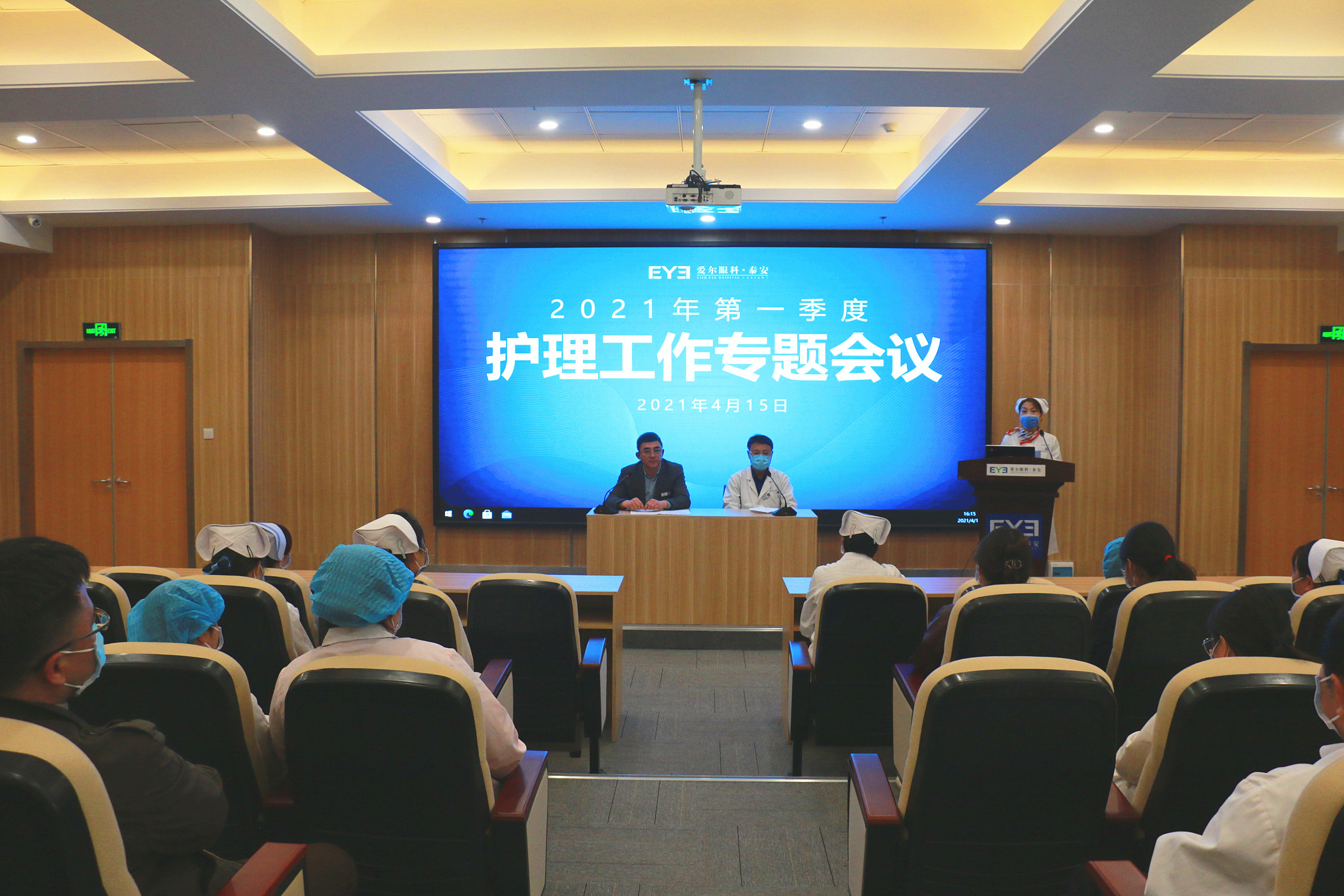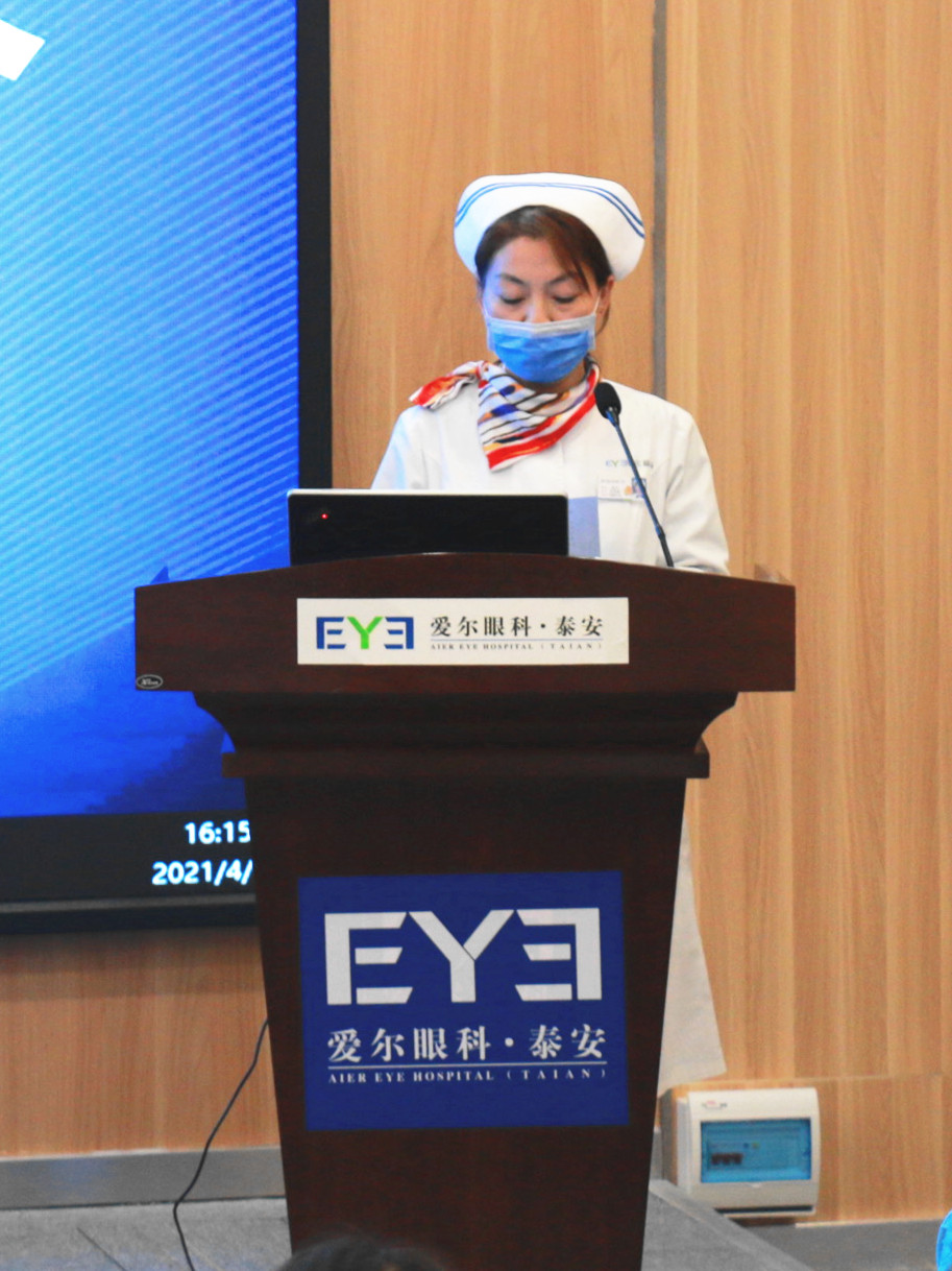 ? ? ? ? ?4月15日,泰安光明愛(ài)爾眼科醫(yī)院成功召開2021年一季度護(hù)理工作專題會(huì)議。院長(zhǎng)范傳峰、行政院長(zhǎng)李光、醫(yī)務(wù)部主任、院長(zhǎng)助理許會(huì)洋、護(hù)理部主任王風(fēng)芝以及全院護(hù)士參加此次會(huì)議。