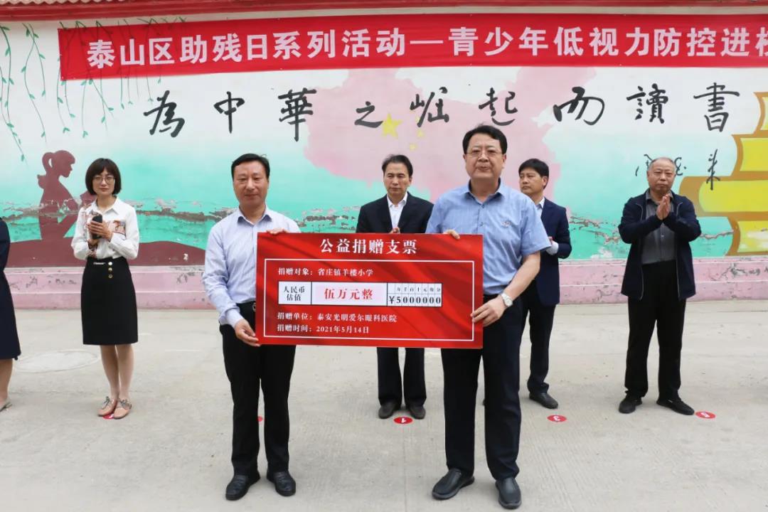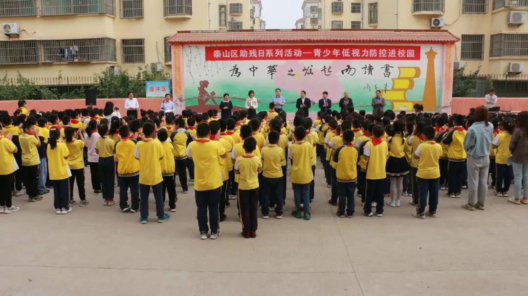 ? ? ? ? 5月14日上午,泰安光明愛爾眼科醫(yī)院數十位醫(yī)護人員攜帶相關設備與低視力防控產品,驅車趕往位于泰安市泰山區(qū)省莊鎮(zhèn)的羊樓小學,開展青少年低視力防控進校園活動。 ? ? ? ? ?此次活動是泰山區(qū)殘聯舉行助殘日系列活動的其中一站,是一項以低視力防控、眼健康科普為主要宗旨,以降低校園內近視發(fā)生率,呵護學生眼健康為目標的公益助學活動。 ? ? ? ? ?泰安市殘聯四級調研員李廣喜、泰山區(qū)政府分管領導范玉文、泰安光明愛爾眼科醫(yī)院CEO楊敬昌、泰山區(qū)殘聯理事長孫超、副理事長劉勝華,省莊鎮(zhèn)副鎮(zhèn)長馬紅、省莊鎮(zhèn)教育委員會黨委副書記馬長榮,羊樓小學校長趙光明以及區(qū)殘聯、愛爾眼科部分醫(yī)護人員及羊樓小學教職工和學生參加此次活動。活動由泰山區(qū)殘聯黨組書記劉長順主持。