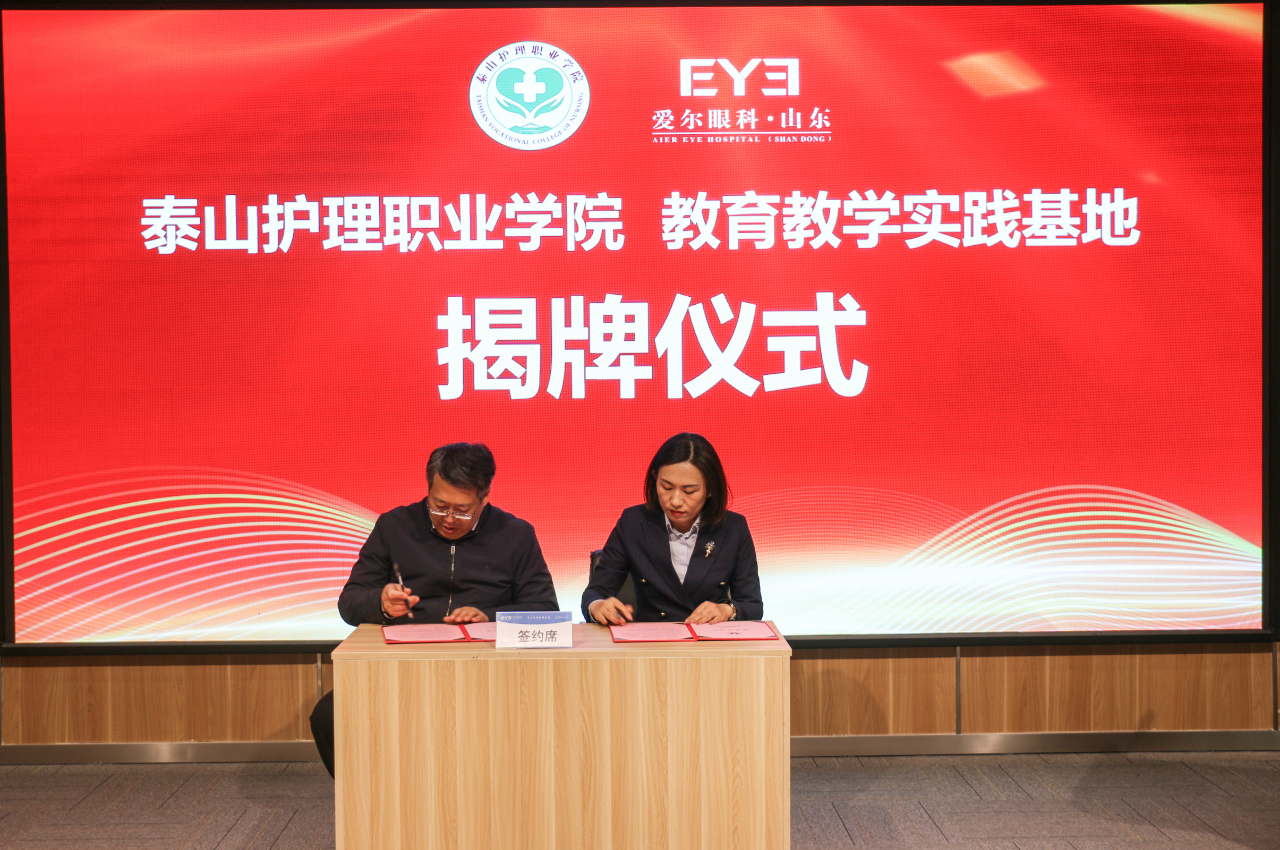會上,雙方代表進行了簽約儀式并共同見證了教育教學(xué)實踐基地和人才培養(yǎng)培訓(xùn)基地的揭牌儀式,標志著泰山護理職業(yè)學(xué)院與愛爾眼科山東省區(qū)的合作正式啟動。