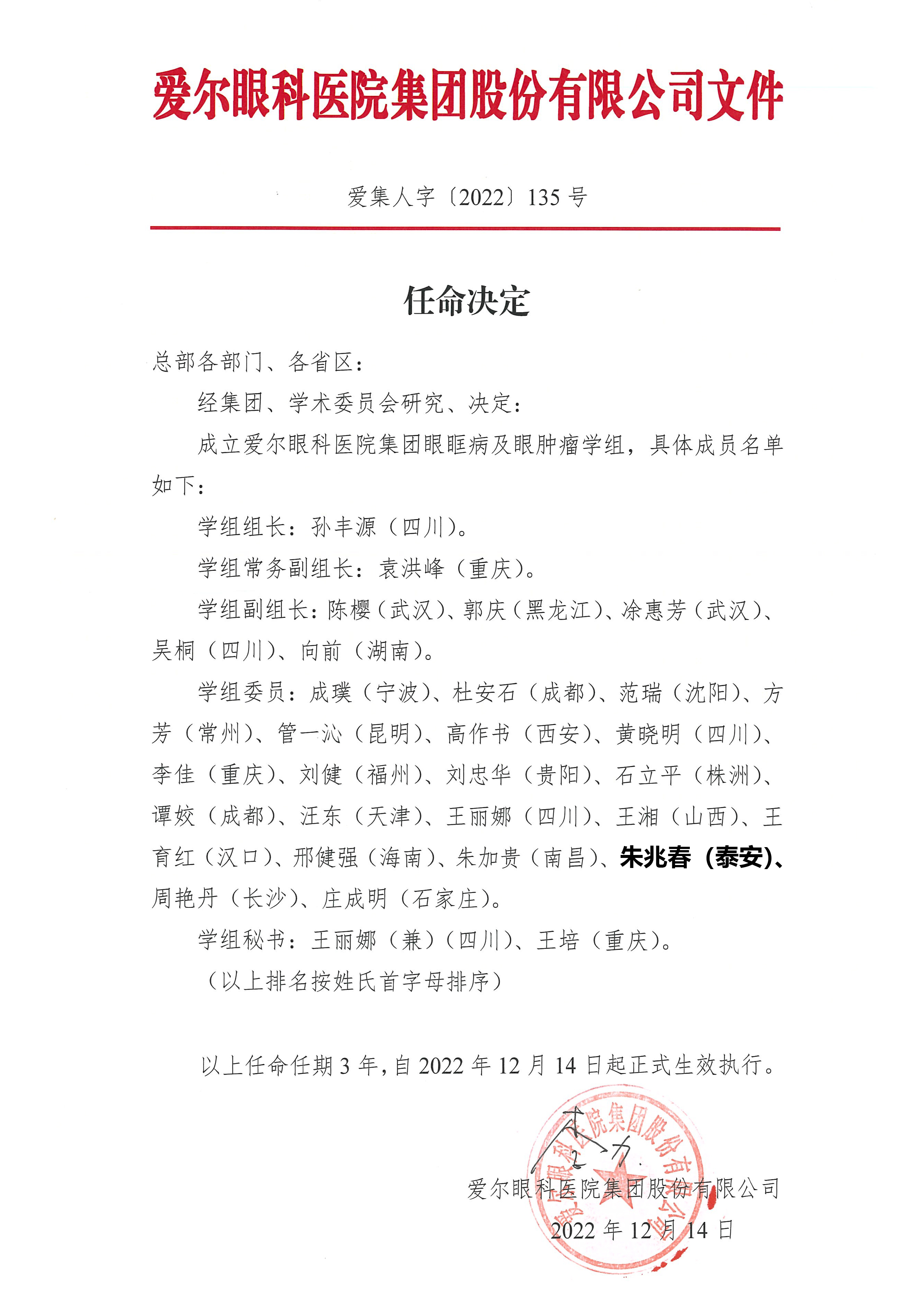 經(jīng)集團(tuán)、學(xué)術(shù)委員會研究決定成立愛爾眼科醫(yī)院集團(tuán)眼眶病及眼腫瘤學(xué)組,由孫豐源教授任組長,我院眼表淚道科主任朱兆春當(dāng)選為學(xué)組委員。??